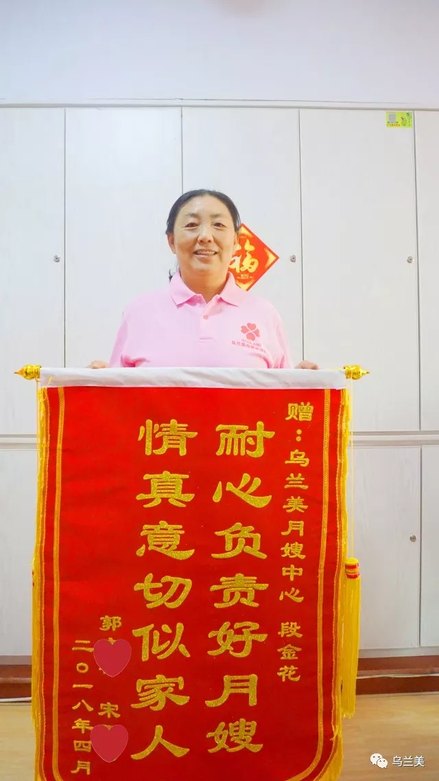 “我們清楚烏蘭美母嬰服務(wù)中心已經(jīng)收到過很多面錦旗,但是這面不同!這是一面有含金量的錦旗,它不僅僅表達(dá)了我們對烏蘭美母嬰服務(wù)中心的謝意,更是表達(dá)對烏蘭美月嫂段金花的愛意!”